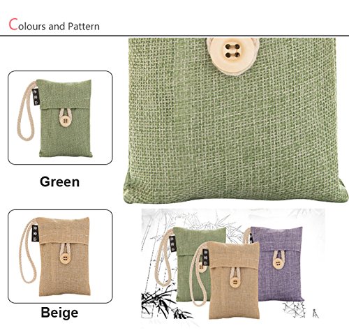 Natural Air Purifying Bamboo Charcoal Bags Removes Odors Harmful Allergens Reusable and Non Toxic Air Freshener 2 Pack (Green)