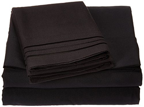 Elegant Comfort 1500 Thread Count Egyptian Quality 4-Piece Bed Sheet Sets, Queen, Deep Pockets, Black