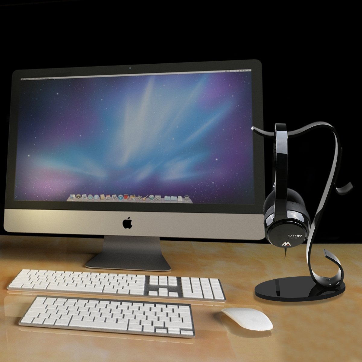 It is a simple headphone stand made of acrylic made directing a sense of quality without damaging the design of the headphone.