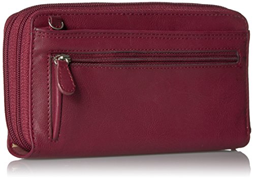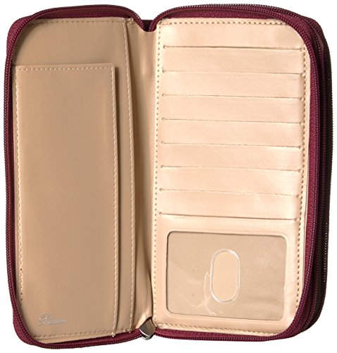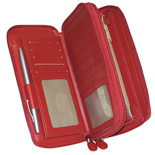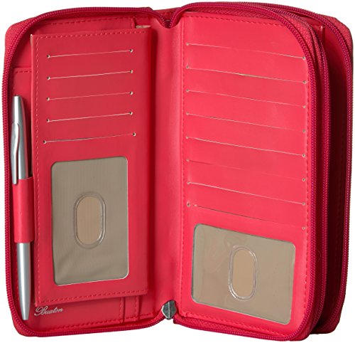 Studio : Buxton Publisher : Buxton Binding : Apparel Product Description Pebble Grain PU, Shiny Nickel Hardware Ultimate Organizer® features two full zip-around compartments and an outside slip pocket. The front compartment features multiple credit card slots and I.D. window, utility pockets, a removable checkbook with pen holder and an additional I.D. window. The second compartment features an interior zipper pocket, multiple credit card slots and a detachable shoulder strap. 0