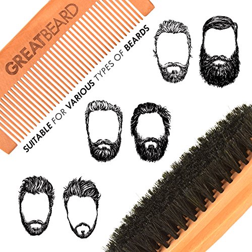 Beard Brush & Comb Kit for Men – With Wild Boar Bristles for Easy Grooming. Use With Beard Conditioner or Softener to Get Perfect Facial Hair &...