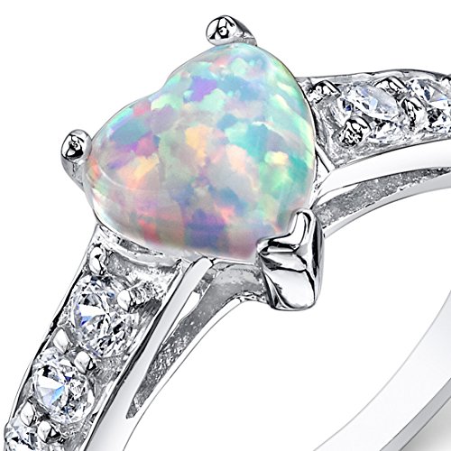 -. Title : Created Opal Ring Sterling Silver Heart Shape 1.00 Carats Sizes 5 to 9