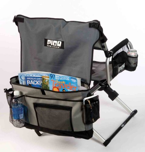 ReleaseDate : 2010-09-01 Studio : GCI Outdoor Publisher : GCI Outdoor Binding : Sports Product Description In GCI Outdoor terms, “pico” (pronounced pee-koe) means “small.” With the PICO Telescoping System, the PICO Arm Chair folds down to 1/16th of its size ? about the size of a laptop case ? which means it can easily be stuffed into a hatchback or trunk. Those who choose to carry the PICO Arm chair over the shoulder will enjoy the stylish, self-contained carry bag, padded shoulder strap pad and lightweight 9 lbs. After quick assembly, the carry bag doubles as the Chair Back Storage Caddy, with ample space for magazines, books, a sweater, a beverage, sunglasses and more. In addition to the Chair Back Storage Caddy, the PICO Arm Chair includes a mesh side storage pocket, a media pocket and a mesh side beverage holder. Lightweight yet sturdy powder-coated aluminum and steel support up to 250 lbs. Stay cool and comfortable with 600 denier polyester and breathable nylon mesh seat and seat back. Measures 17” x 22” x 34” when open and 20” x 3.75” x 12” when folded. Ideal for camping, RV’ing, fishing, and watching sports. Scratch-free nylon-coated feet also makes the PICO Arm Chair an affordable option for use indoors as extra, hide-away seating or dorm/apartment living.
