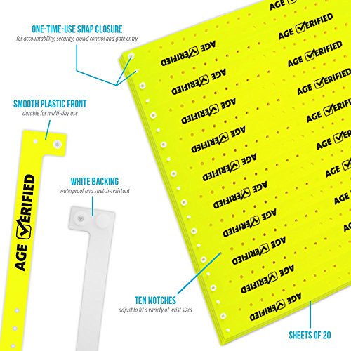 -. Title : Neon Yellow Age Verified - Wristco Plastic Wristbands - 100 Ct.