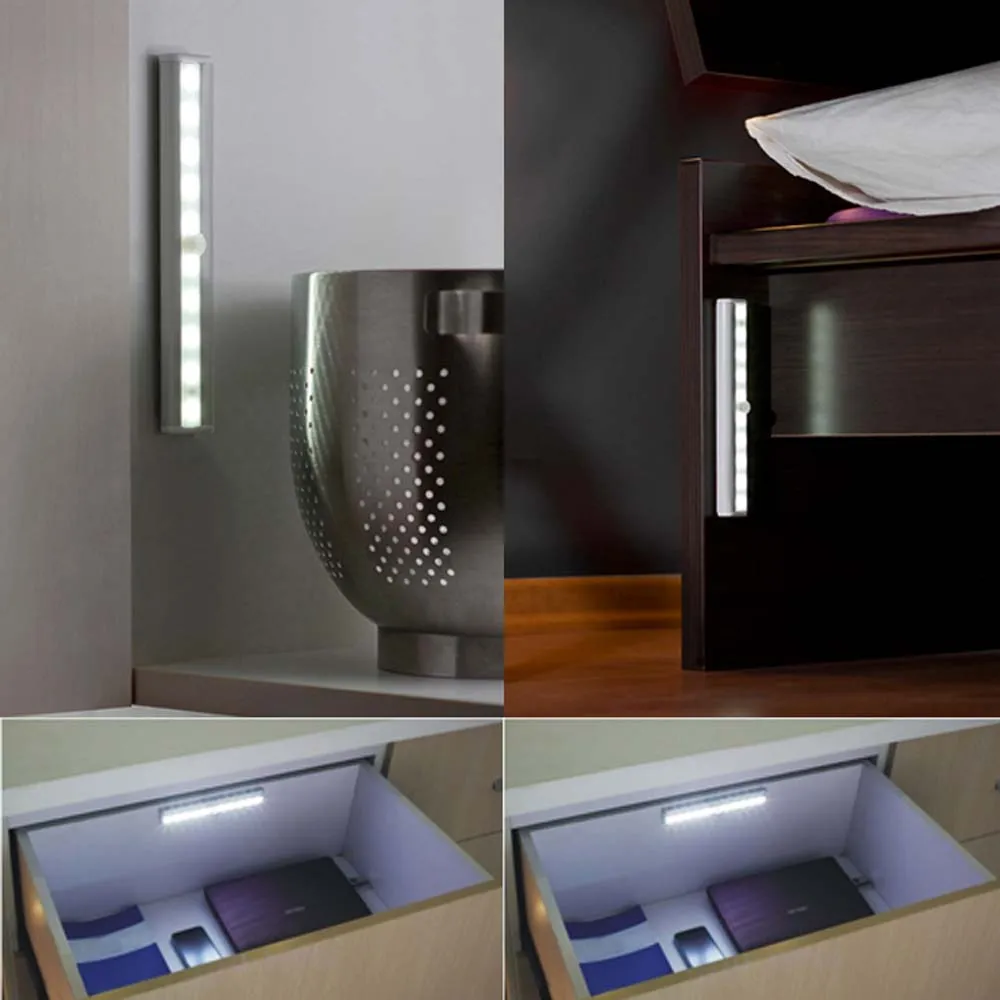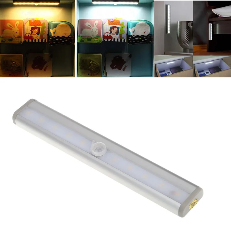 10 SMD2835 PIR Infrared Human Body Sensor Lamp Night LED Bar Light for Corridor Drawer Cabinet Kitchen Livingroom Bedroom Indoor