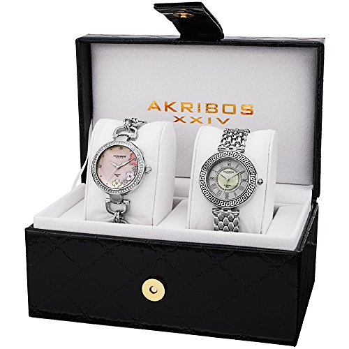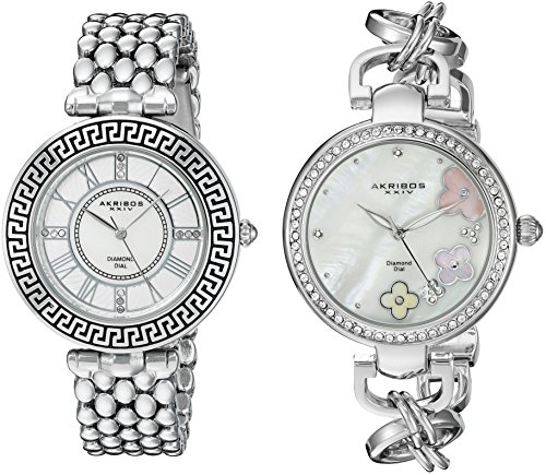 -. Binding : Watch -. Brand : Akribos XXIV -. Color : Silver -. Department : womens -. EAN : 0848572072816 -. Feature : Mother of pearl dial with diamond markers / Three hand movement / Polished silver tone case with silver tone bracelet / Quartz movement with analog display / Watches Displayed in Gift Box -. Label : TWI Watches, LLC -. Manufacturer : TWI Watches, LLC -. Model : AK886SS -. MPN : AK886SS -. PartNumber : AK886SS -. ProductGroup : Watch -. ProductTypeName : WATCH -. Publisher : TWI Watches, LLC -. Studio : TWI Watches, LLC -. Title : Akribos XXIV Women's AK886SS Quartz Movement Analog Display Watch Gift Set -. UPC : 848572072816