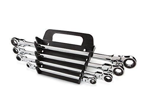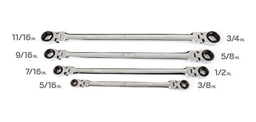 TEKTON WRN77062 Extra Long Flex-Head Ratcheting Box End Wrench Set with Store and Go Keeper, Inch, 5/16-Inch - 3/4-Inch, 4-Piece
