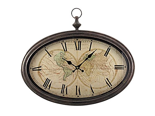 -. Title : World Map Antiqued Bronze Framed Wall Clock