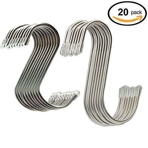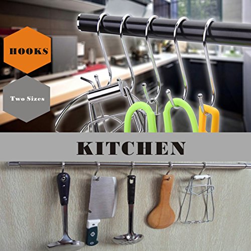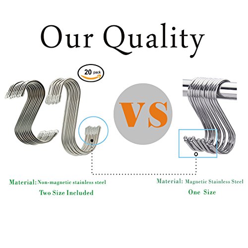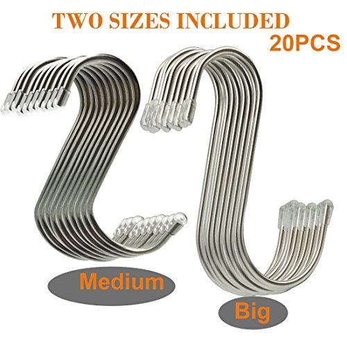 20 Pack Two Sizes Heavy-duty Stainless Steel S Shaped Hooks Hanging Hooks Hangers for Bedroom, Office, Kitchen, Bathroom