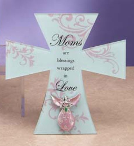 StealStreet SS-UG-HOLC-157 "Moms Are Blessings Wrapped In Love" Cross with Angel Design, 8"
