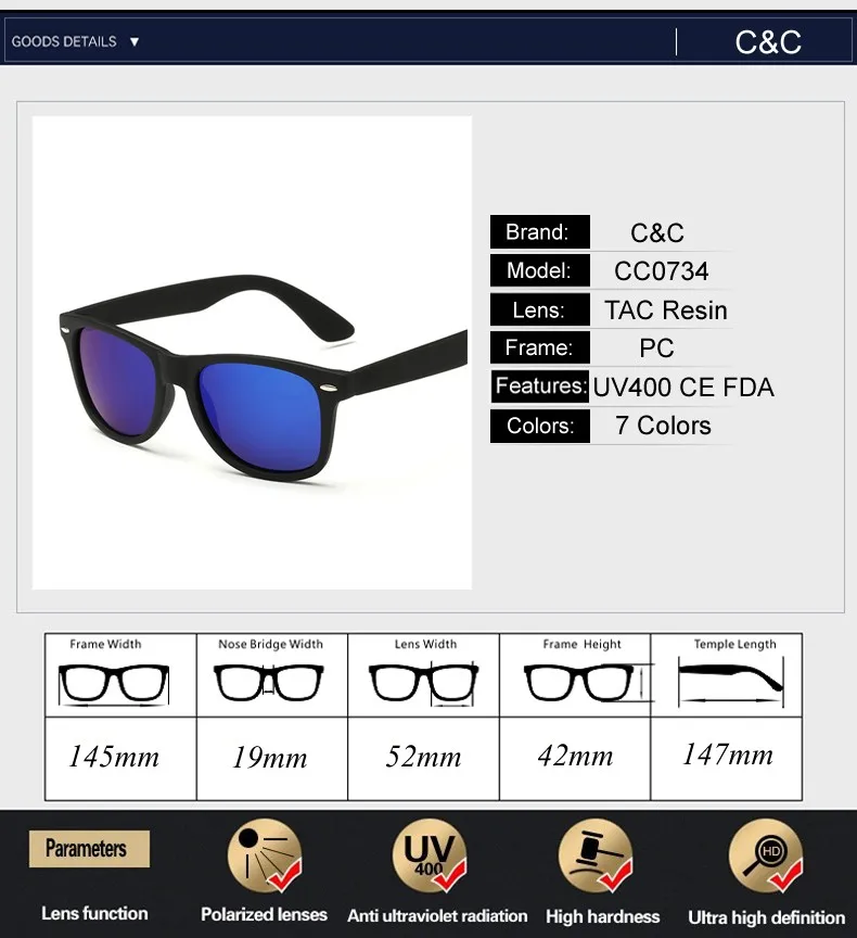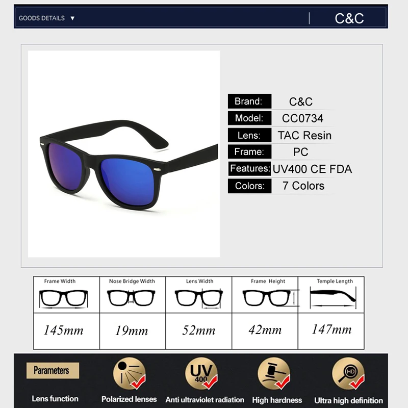 Function:UV400 Protection Against Harmful UVA/UVB RAYS