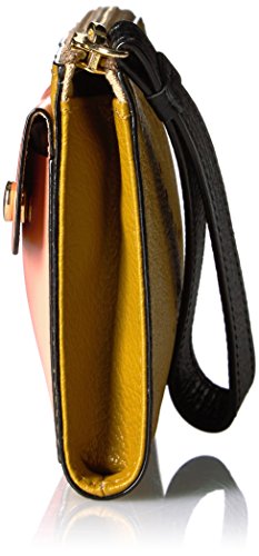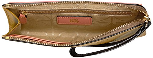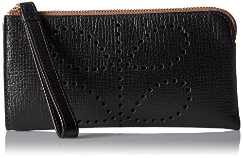 Punched stem' textured leather flat zip wallet. Contrast coloured back pocket with flap and double popper closure. Sand linear stem jacquard lining and contrast coloured zip to close. Inside details include six card pockets and one zip compartment.