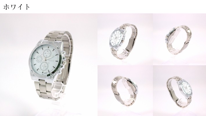 時計 腕時計 メンズ ステンレス バンド おしゃれ ビジネス 高級感 ホワイト