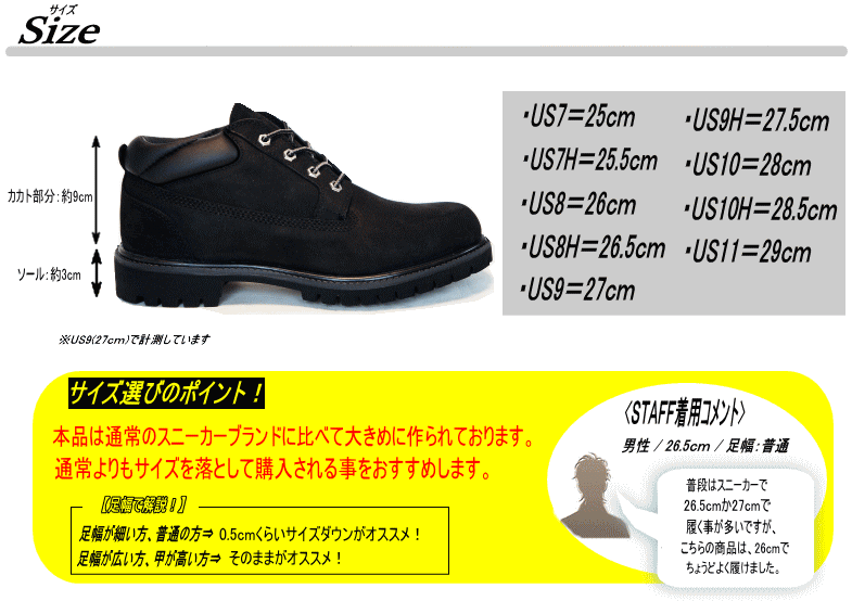 | サイズ | 作り⇒大きめ 【サイズ選びのポイント!】 足幅が細い方、普通の方⇒0.5cmくらいサイズダウンがオススメ! 足幅が広い方、甲が高い方⇒そのままがオススメ! |