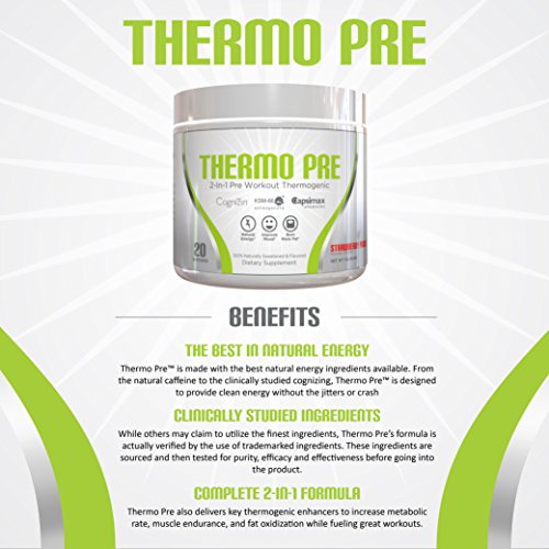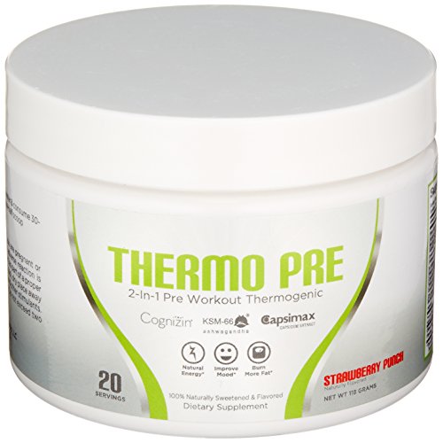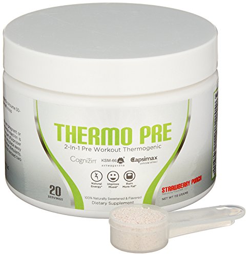 -. Binding : Health and Beauty -. Brand : Supplement Smart -. EAN : 0860268000248 -. Feature : All-Natural Flavor with no fillers, artificial flavors, or dyes - The majority of pre workouts & fat burners are loaded with chemicals & fillers (Red #40, Titanium Dixode) that do nothing but detract from your health. You go to the gym to improve health. ThermoPRE has your back / Trademarked Ingredients Ensures Efficacy & Potency - ThermoPRE's quality is verified by the use of trademarked ingredients that have been proven through clinical trials. Cognizin, KSM-66, and Capsimax solidify the ultimate Thermogenic Performance Booster / 2-In-1 Pre Workout & Thermogenic Fat Burner - Sustained (Clean) Pre Workout Energy Meets Increased Fat Burning Capabilities. This is the perfect pre workout for those looking to accelerate body fat loss while getting complete performance enhancement / Safe & Effective - Most weight loss products that "work" have a nasty tendency for jeopardizing your health. Backed by trademarked ingredients, safe & effective are synonymous when using ThermoPRE. / Accelerate your results - Clinically tested ingredients backed by multiple studies verify the many benefits of ThermoPRE. Increase thermogenesis & proliferate your body's fat burning mechanisms to accelerate your results / Non-Habit Forming Non-Crash Pure Energy - All Natural cognizin & organic caffeine provide a natural performance boosts -. IsAdultProduct : 0 -. Label : Supplement Smart -. Manufacturer : Supplement Smart -. NumberOfItems : 1 -. PackageQuantity : 1 -. ProductGroup : Health and Beauty -. ProductTypeName : HEALTH_PERSONAL_CARE -. PublicationDate : 2016-05-05 -. Publisher : Supplement Smart -. ReleaseDate : 2016-05-02 -. Studio : Supplement Smart -. Title : THERMO PRE - All-Natural 2-In-1 Pre Workout Thermogenic Fat Burner, Non-Habit Forming Sustained Energy Weight Loss Formula with KSM-66 Ashwagandha, Capsimax and Cognizin, Strawberry Punch, 20 Serving -. UPC : 860268000248
