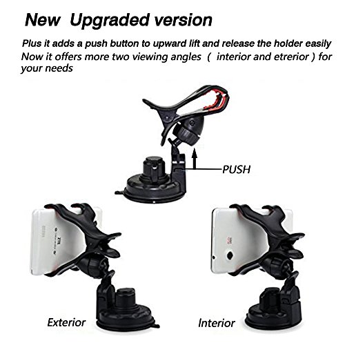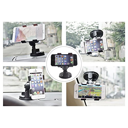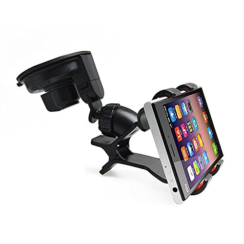 Huixinda Advantage:2-in-1 phone holder,one is clip-on holder, easy mounted onto any desk, bed headboard, chair, wall cabinet; another is interchangable stick-on mount, mounted on Car Windscreen or any smooth surface - comes with 2 cellphone clips