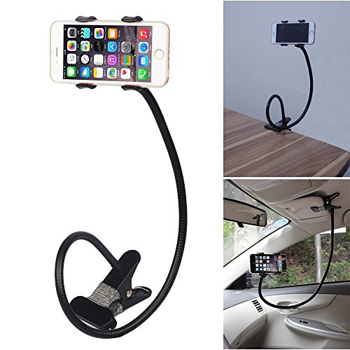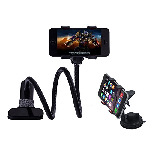 Huixinda 2-in-1 Gooseneck Flexible Cell Phone Clip Holder for Bed, Car, Desktop, with Car Vehicle Windshield Suction Cup Mount for iPhone /Samsung /GPS/Smartphone