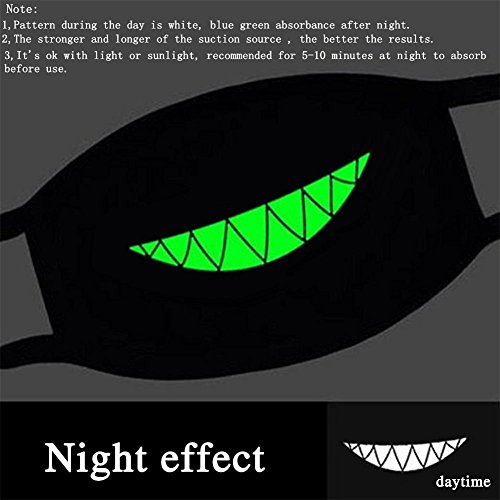 Mouth Mask ZWZCYZ Masks Cotton Cool Green Glow Teeth Luminous Anti Dust Muffle Kpop Face Mask for Cycling Party Halloween Gift Cosplay