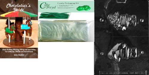 Cybrtrayd Mdk25GRBk-C143 3D Santa Chocolate Mold with Chocolatier's Bundle of 25 Cello Bags, 25 Green Twist Ties and Chocolatier's Guide