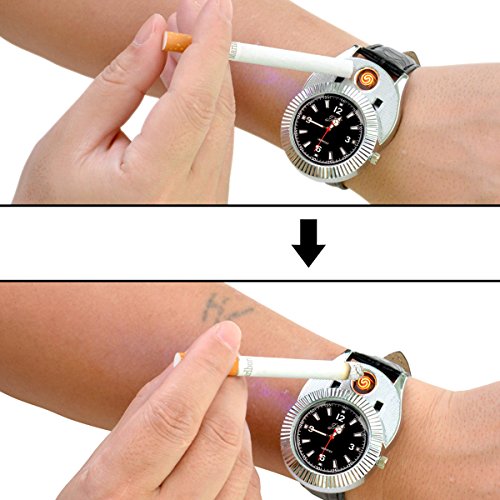 Watchband Material: Leathe; Watch Case Material: metal; Watchband Width: 1.8cm; Watch Total Length: About 25cm. Being Cigarette Lighter with blue LED light.