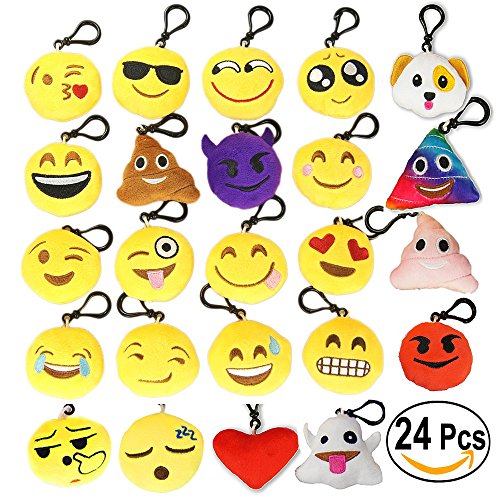 [Description] ¡¾24 DIFFERENT ADORABLE EMOJI FACES¡¿ Emoji craziness is up and coming not only among teenagers and children but adults as well. Choose among our 24 different designs: sinister eye_ laughing_ heart eyes_ lovely face_ pitiable emoji_ blink eyes_ show love_ laugh and cry_ cool_ brown poo_ colorful poo_ pink poo_ spit tongue_ blue angry_ red angry_ show tooth_ yummy_ despise_ cold sweat_ pull the nose_ sleeping_ red love_ ghost_ dog``s head ¡¾SOFT PLUSH with COMFORTABLE TOUCH¡¿ Our marvelous emoji collection is made from high quality and soft to touch fabrics! The plush yellow round pillow will feel nice and comfortable while holding and you may rest assured that your kids will absolutely love them. They are great ideal for both boys and girls of course ¡¾EASY INSTALLATION with DURABLE MATERIAL¡¿ These emoji keychains size is approx 2.0``_ small but very cute_ it was meticulously designed to be easily installed and removed with the durable and strong short clip attached to the top_ that will allow you to easily carry them along without the constant fear of losing them ¡¾IT CAN BE USED WIDELY¡¿ Thanks to their ergonomic craftsmanship_ you can clip and hang them anywhere you like. You can clip it on your purse_ your kid``s school bag_ backpack_ lunch box or pencil case_ your keys_ maybe your phone or on the car``s mirror_ it also can be used on collecting or give to your friends or family as a gift. Of course_ you could put them to decorate the party_ it is very lovely and funny ¡¾SHOW YOUR DIFFERENT MOOD EVERYDAY¡¿ If you are a huge emoji fan or your kids simply love them_ then you can get these keychains. We proudly present you our set of 24 wonderfully designed emoji keychains that will become your mood buddies from now on everywhere you go! Please just depict today``s mood right away ã€24 DIFFERENT ADORABLE EMOJI FACES】 Emoji craziness is up and coming not only among teenagers and children but adults as well. Choose among our 24 different designs: sinister eye_ laughing_ heart eyes_ lovely face_ pitiable emoji_ blink eyes_ show love_ laugh and cry_ cool_ brown poo_ colorful poo_ pink poo_ spit tongue_ blue angry_ red angry_ show tooth_ yummy_ despise_ cold sweat_ pull the nose_ sleeping_ red love_ ghost_ dog``s head ã€SOFT PLUSH with COMFORTABLE TOUCH】 Our marvelous emoji collection is made from high quality and soft to touch fabrics! The plush yellow round pillow will feel nice and comfortable while holding and you may rest assured that your kids will absolutely love them. They are great ideal for both boys and girls of course ã€EASY INSTALLATION with DURABLE MATERIAL】 These emoji keychains size is approx 2.0``_ small but very cute_ it was meticulously designed to be easily installed and removed with the durable and strong short clip attached to the top_ that will allow you to easily carry them along without the constant fear of losing them ã€IT CAN BE USED WIDELY】 Thanks to their ergonomic craftsmanship_ you can clip and hang them anywhere you like. You can clip it on your purse_ your kid``s school bag_ backpack_ lunch box or pencil case_ your keys_ maybe your phone or on the car``s mirror_ it also can be used on collecting or give to your friends or family as a gift. Of course_ you could put them to decorate the party_ it is very lovely and funny ã€SHOW YOUR DIFFERENT MOOD EVERYDAY】 If you are a huge emoji fan or your kids simply love them_ then you can get these keychains. We proudly present you our set of 24 wonderfully designed emoji keychains that will become your mood buddies from now on everywhere you go! Please just depict today``s mood right away