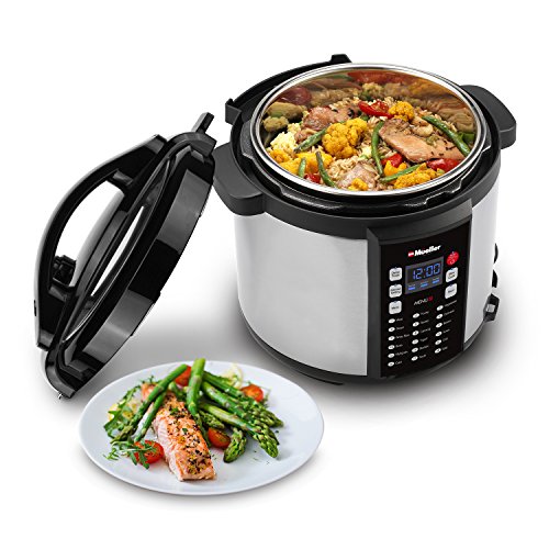 Mueller Pro Series is a smart Electric Pressure Cooker designed in Germany, Convenient and Dependable. It speeds up cooking by 2~6 times using up to 70% less energy and, above all, produces nutritious healthy food in a convenient and consistent fashion. Mueller Pro Series is an 9-in-1 programmable cooker, it replaces 9 kitchen appliances to cook your favorite dishes with the press of a button. A 24-hour timer allows for delayed cooking. Automatic keep-warm holds the temperature of the food until you serve it. Mueller Pro Series generates almost no noise and leaks no steam. It traps all the aromas in the food without heating up the kitchen. The slim body design has lid holders for both left and right handed users. The brushed stainless steel exterior is finger print resistant. Its elegant and durable design makes it easy to clean and pleasurable to use for years to come. Mueller Pro Series uses the latest technology with an embedded microprocessor, which monitors the pressure and temperature, keeps time and adjusts heating intensity. The cooking programs have been lab-tested numerous times for optimal effect. Mueller Pro Series is carefully designed to eliminate many common errors that could cause harm or spoil food. It is UL certified giving you uncompromised safety and peace of mind and protects you with proven safety mechanisms and patented technologies.Feature