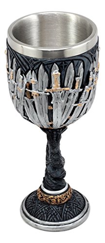 Studio : Atlantic Collectibles Publisher : Atlantic Collectibles Product Description This Legend Of The Swords Dragon Wine Goblet is made of high quality resin with stainless steel liner, individually hand painted and polished. Color Tone May vary from pictures. This Legend Of The Swords Dragon Wine Goblet is 7 1/8" tall and 2.75" in diameter approximately. Goblet has 7 oz capacity. Hand Wash Only. This Legend Of The Swords Dragon Wine Goblet is perfect for your medieval/renaissance themed parties! It is designed for Game Of Thrones, Might and Magic Gaming and other fantasy sequel fans. Imagine drinking out of this goblet with your buddies, close relatives or any game of thrones fan as you do life together! This Goblet is topped with a stainless steel liner for safe drinking as well as washing. Because each piece is individually hand painted and polished, color tone may vary slightly from pictures. 0