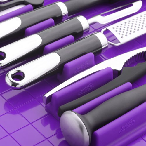End drawer clutter in minutes with this colorful non-slip Base mat and repositionable organizer. Unlike generic utensil organizers that require you to choose a single size, Drawer Decor uses a non-slip silicone Base mat and repositionable pieces called Divitz. They're completely adjustable. In fact, this 16-piece system with Base mat can quickly be trimmed to fit any size drawer. The Drawer Decor Starter Kit includes 15 Divitz in two sizes (10 Short and 5 Triangle) that naturally adhere to the Base mat, securing items and preventing sliding. Easy to clean and food-grade safe. Great for kitchen utensil drawers, desks, tools and much more. Additional pieces and a variety of colors are available to match any decor.
