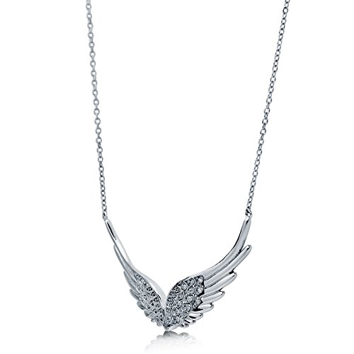 -. Title : Rhodium Plated Sterling Silver Cubic Zirconia CZ Angel Wings Pendant Necklace 14.5"+2" Extender