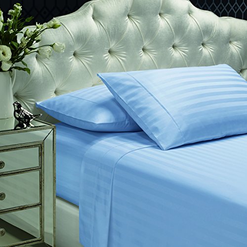 300 Thread Count 100% Cotton Sheet Set, Stripe Sheets, Soft Sateen Weave,Full Sheets, Deep Pockets,Hotel Collection,Luxury Bedding-Bestseller- Super Sale 100% Cotton,Ice Blue by Dream Castle