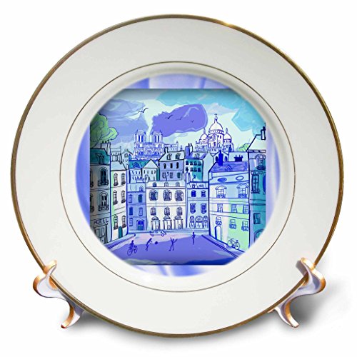 3dRose cp_110930_1 Paris in Watercolors-Porcelain Plate, 8-Inch