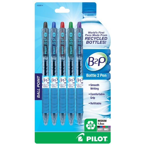 Pilot B2P Recycled Ballpoint Pen, 1.0 mm-Assorted Colors-5 ct