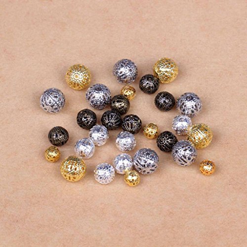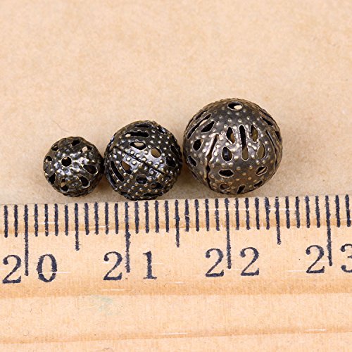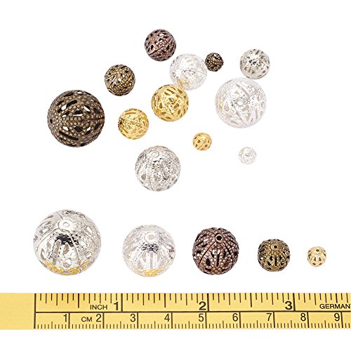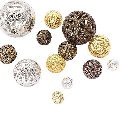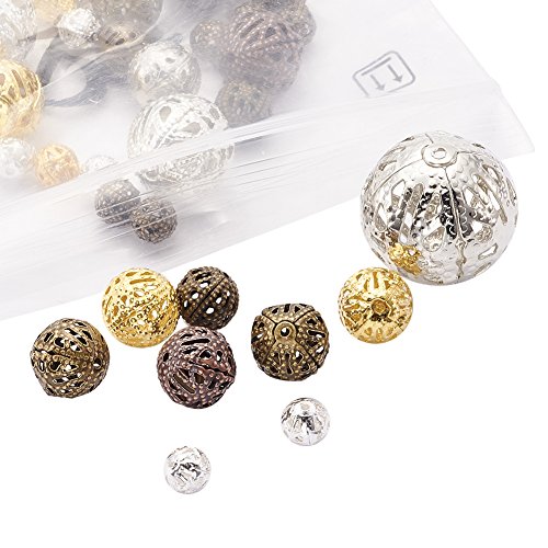 Pandahall 100pcs Mixed Style Iron Filigree Beads, Round, Mixed Color, 8~20mm, Hole: 0.5~1mm
