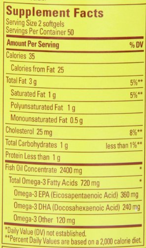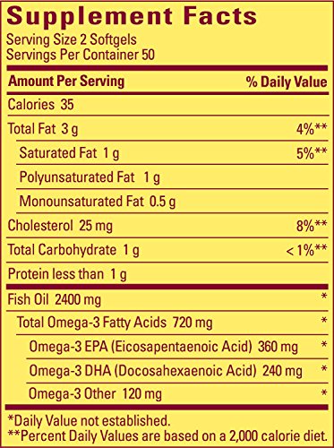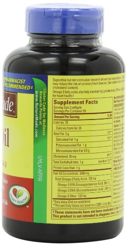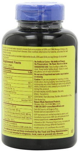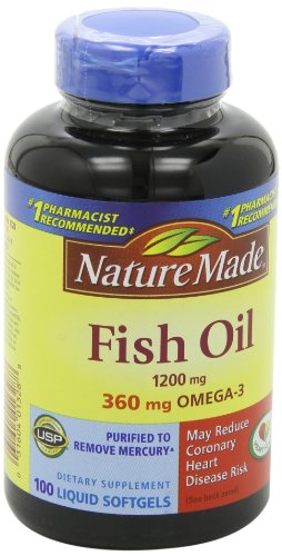 Trust your health with Nature Made Fish Oil 1200 mg w. Omega-3 360 mg Softgels. The Omega-3's in Fish Oil may reduce coronary heart disease risk. They protect the heart by keeping cell membranes flexible and healthy.