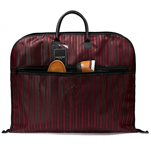 -. Feature : MULTIFUNCTION:Our garment bag has multiple functions, mainly design for you to keep your suits or dresses neatly when attending a wedding event or other important occations,also it can be used for travel. When not in use, you can hang it in the closet to keeps your suits and dress away from dust. It's a perfect solution for traveling with dresses and formal wear whether by car, plane, train, or boat. / WATER RESISTANT FABRIC: Water-resistant jacquard oxford fabric with water-resistant 210D Nylon Oxford lining, keeps your clothes dry even in a rainy day. / FRIENDLY DESIGN:Inside the bag,there is one metal hanging hook which is convenience for you hanging your garments.Holds up 1 to 2 garments(suits;shirts;dresses;trousers etc.),keeps your clothes neat and wrinkle-free. / MEASUREMENT:Capacity:39L/39.4"(L)*23.6"(W). One extra large pockets with zipper closure allow you to store shoes,shirts,laptop and other accessories. / QUALITY STITCHING:We always pursue for high quality stitching to make sure our garment bag would not burst at the seams.The size perfectly fits in the airplane's overhead bin and can be used as a carry-on item for most airlines.