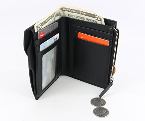 - Feature : 100% Cowhide Leather / Leather wallet with six card slots, two bill pocket, and a slide-out ID window / Removable photo holders, ID Window with thumb push out to get the ID out with ease / Rubber logo at front,2 separate bill compartments / Handmade and well constructed