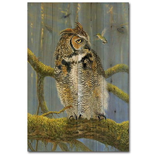 WGI-GALLERY 1624 Ferrous Owl and Hummingbird Wooden Wall Art
