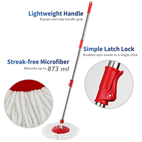 PROTECT YOUR FLOOR: If you are sick and tired of unaesthetic streaks on your floors that degrade your home design, then our spin mop is going to make your day a breeze! Its microfiber mop perfectly absorbs all the water and leaves a fresh and clean sensation behind without excessive leaking- what else do you need?