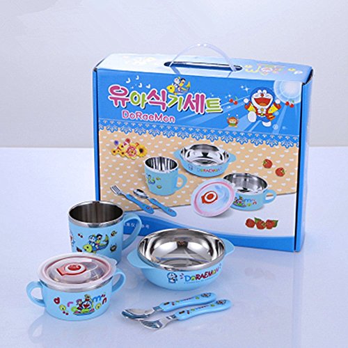 -. Feature : Made of Stainless Steel and high quality Plastic materials, perfect for baby to adult use,Dishwasher safe and recommended by Healthy Child Healthy World / Include:milk cup,bowl,shallow bowl with two ears,spoon,fork. / Lightweight and easy for kids to use / No bio toxin and no BPA