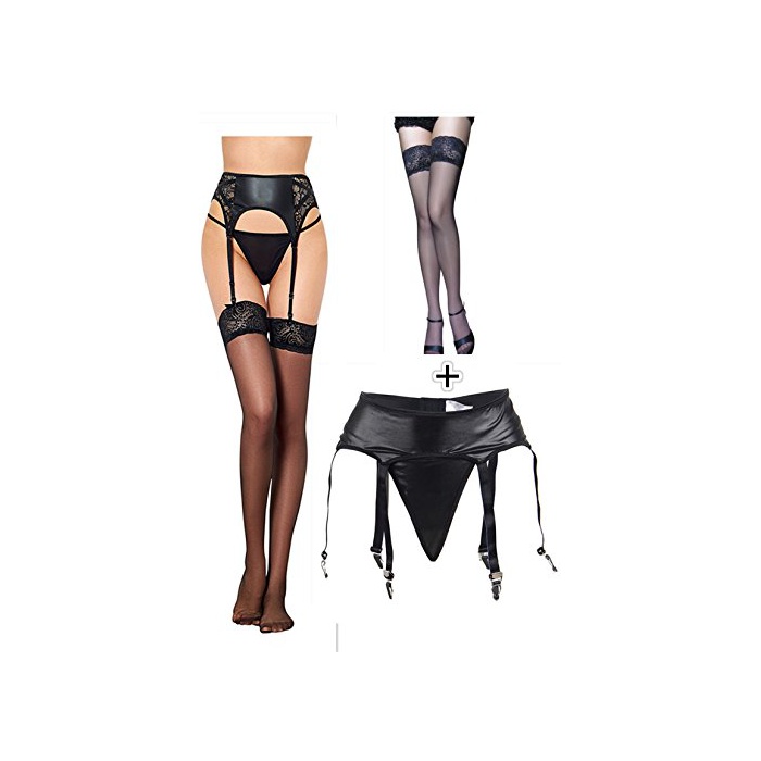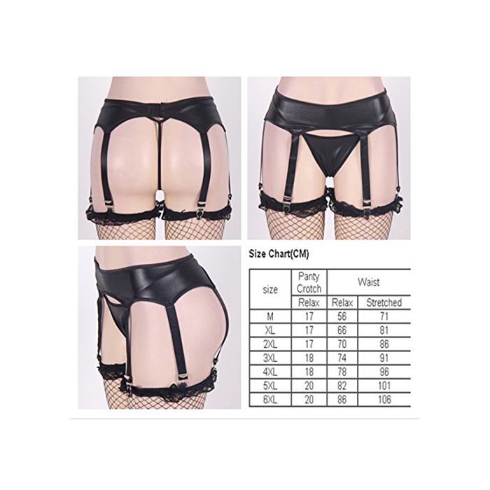 원본상품명: ohyeahladyフェイクレザ付けガタベルト ガタベルト用ストッキング c-ストリング 殺下着 6つ革ベルト 美尻 革 3点セット レディズ 大きいサイズ ブラック(M-6XL)