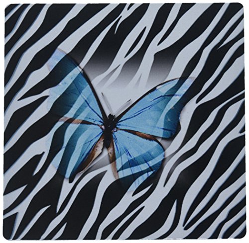3dRose LLC 8 x 8 x 0.25 Inches Mouse Pad, Turquoise Butterfly on Zebra (mp_38928_1)