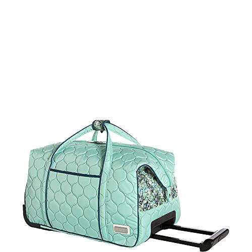 Studio : Cinda b. Publisher : Cinda b. Binding : Apparel Product Description If you're tired of your ho-hum wheeled bag then your timing couldn't be better, because cinda b's Carry-On Rolly is fashionable, functional and is turning heads from coast to coast. The beautiful colorway and gorgeous, eye-catching design elements ensure that you'll always travel in style. And, talk about function! This fabulous travel duffle measures 21 x 11.5 x 12.5inches, has 3 large interior slip pockets for smaller items, 1 exterior zip pocket, 1 exterior slip pocket and snap down ends that keep everything neat and tidy. It features cinda b's signature Big-Mouth opening so packing and unpacking is a breeze, and an extra-long telescoping handle that effortlessly glides your Carry-on Rolly through throngs of weary travelers on inline skate wheels. So, next time you're looking for the perfect traveling companion, look no further than cinda b. Cinda b takes you from around town to around the world without missing a beat! Cinda b's Carry-on Rolly is fashioned from a lightly padded, quilted nylon/poly fabric that is water resistant, stain resistant, surprisingly lightweight and extremely durable; spot clean only. ABOUT CINDA B: After running a successful interior design business in Atlanta, Cinda found it difficult to find a fully functional, stylish bag that was versatile enough for the modern woman's everyday life. As a result, the cinda b brand was created. For cinda b, it's important to produce American handbags and create American jobs. Teaming up with one of the most experienced, well-known sewing companies in the country, each and every cinda b product is proudly made in the USA. Cinda b offers a variety of pattern options that combine bold and unique modern prints with effortless functionality. The cinda b family invites busy women everywhere to discover their beautiful collections of handbags, travel bags and accessories available on Amazon. 0