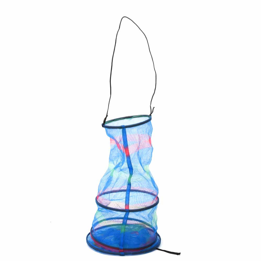 This three tiered collapsible fishing basket is made of nylon material, lightweight and durable. The bottom opening can be adjusted by a drawstring buckle, convenient to release fish. Collapsible design with a black string on the top, convenient to carry. A good accessory for fishing lovers.u0026nbsp;
