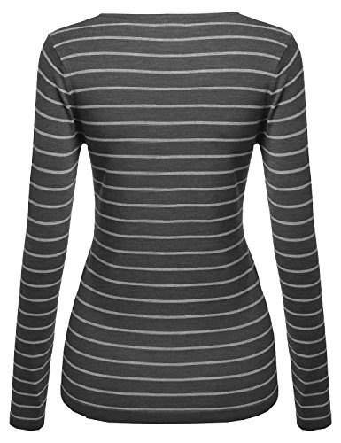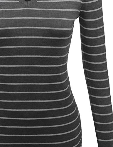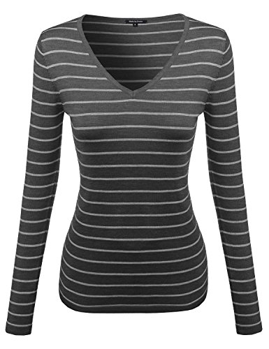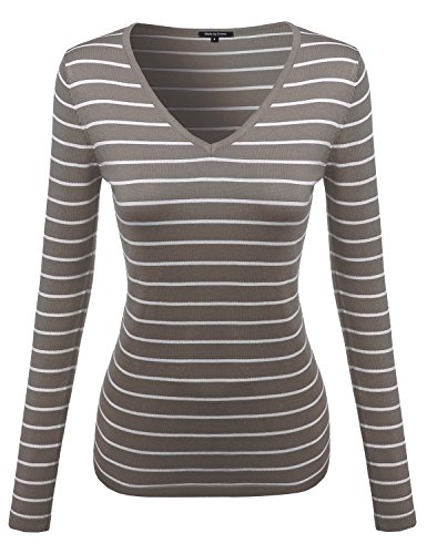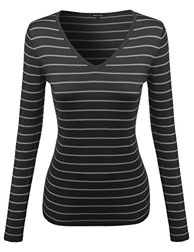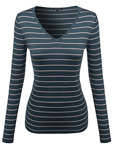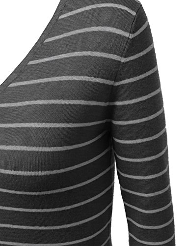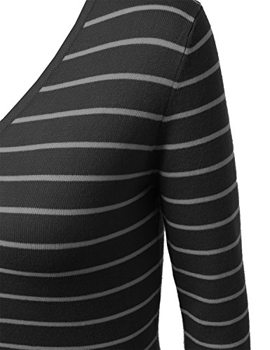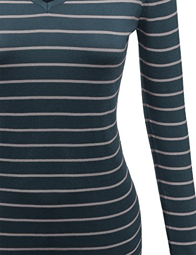 | MBE Women's Basic V-neck Stripe Sweater Various Color Tops |