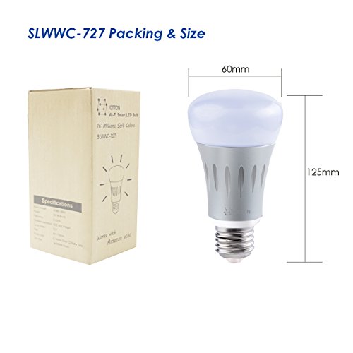 - 【Energy Saving and Widely Used】- A19 7W dimmable LED Wi-Fi bulb. Rated life span 30000 hours, Can be used in the home indoor lighting, hotel, meeting room, museum, restaurants, bar, cafe, cocktail party, birthday party, etc. 16 million colors are available, from 2700k to 6400k. Choose different colors to suit your mood.