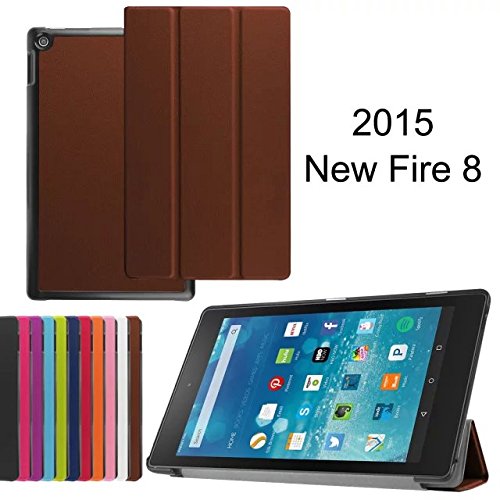 Xindayi Fire Hd 8 2015 Case - Ultra Slim Lightweight Smart-shell Stand Cover with Auto Wake / Sleep for Amazon Kindle Fire Hd 8 Inch Display Tablet (2015 Release Only), (3-fold-brown)