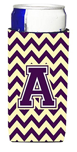 Letter A Chevron Purple and Gold Ultra Beverage Insulators for slim cans CJ1058-AMUK