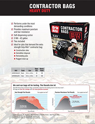 Grip Rite Prime Guard GRHDCBAG20 Grip Rite Heavy Duty 3 Mil Black Contractor Trash Bags 20 per box