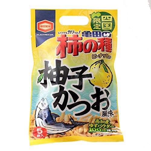-. Feature : 亀田製菓の柿の種、四国土産バージョンです。柿の種の表面に高知産柚子パウダーをほどこし、柚子かつお風味に仕上がっております。お土産やおやつとしても大変喜ばれ好評いただいております。 / 亀田の柿の種ピーナツ入り 柚子かつお風味 - 徳島県物産館ネットショップ / 入り数 : 120g(5個装) / 賞味期限: 約1ヶ月 / 保存方法: 常温(直射日光や高温を避け保存)