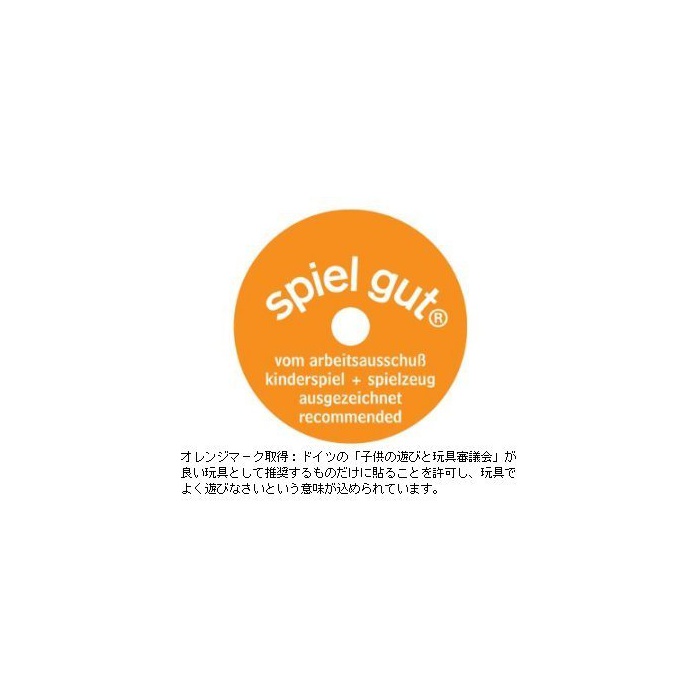오렌지《마》-《구》(spiel gut : 《슈피》-《루구》-《도》)취득: 독일의「아이의 놀이와 장난감 심의회」가 좋은 장난감으로서 권장 하는 것 만큼 붙이는 것을 허가하고, 장난감 나와도 좋은 놀아 주십시오다고 하는 의미가 재어져 있습니다.